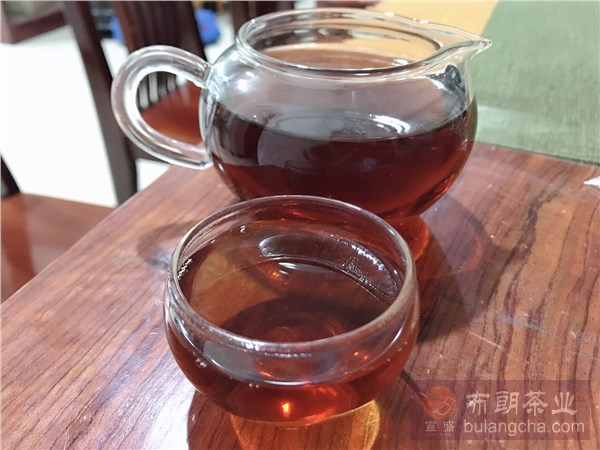 湯色棗紅,圓潤而透亮,陳香濃郁,入口便是甜,滑,潤。甘甜的茶湯入胃,暖暖的。